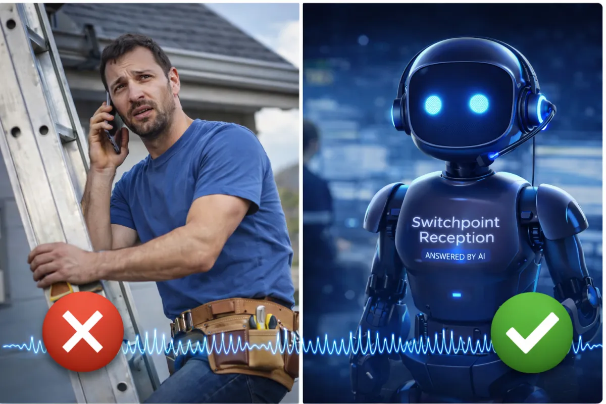 Switchpoint Reception is a Voice AI assistant that answers your phone like a real receptionist. It picks up missed calls, qualifies leads, books estimates, handles common questions, and filters out time-wasters — all without you lifting a finger.